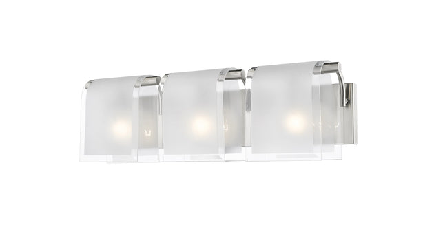 Regular price $260.003 Light Vanity --- Bent frosted glass shades are hung over brushed nickel hardware on this 3 light vanity to create a modern touch for any room. Specifications Style Number 169-3V-BN Install PDFs 169-3V-BN.pdf Actual Weight... -