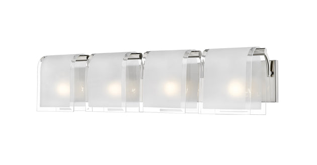 Regular price $352.004 Light Vanity --- Bent frosted glass shades are hung over brushed nickel hardware on this 4 light vanity to create a modern touch for any room. Specifications Style Number 169-4V-BN Install PDFs 169-4V-BN.pdf Actual Weight... -