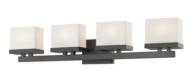 Regular price $230.104 Light Vanity --- Sleek and clean lines are the defining features of the Rivulet collection of vanity fixtures. Matte opal cubic shades are illuminated featuring the latest in dimmable, LED technology. These fixtures maximize output... -