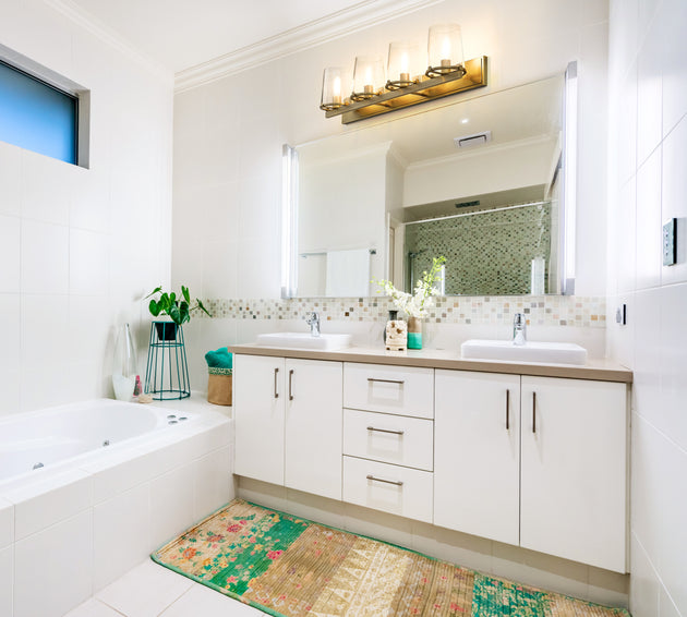 Regular price $145.604 Light Vanity --- The contemporary Savannah family adds sophistication to home décor. The beautifully appointed brushed nickel fixture is perfectly paired with matte opal glass shades in this 4 light vanity. Specifications Style Number 412-4V... -