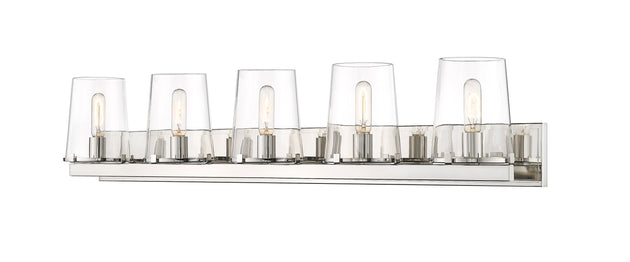 Regular price $400.405 Light Vanity The generous proportions of the Callista Collection gives this hand-crafted steel series a solid design presence. Choose the Polished Nickel finish for a contemporary or transitional look or go bold with a Matte... -