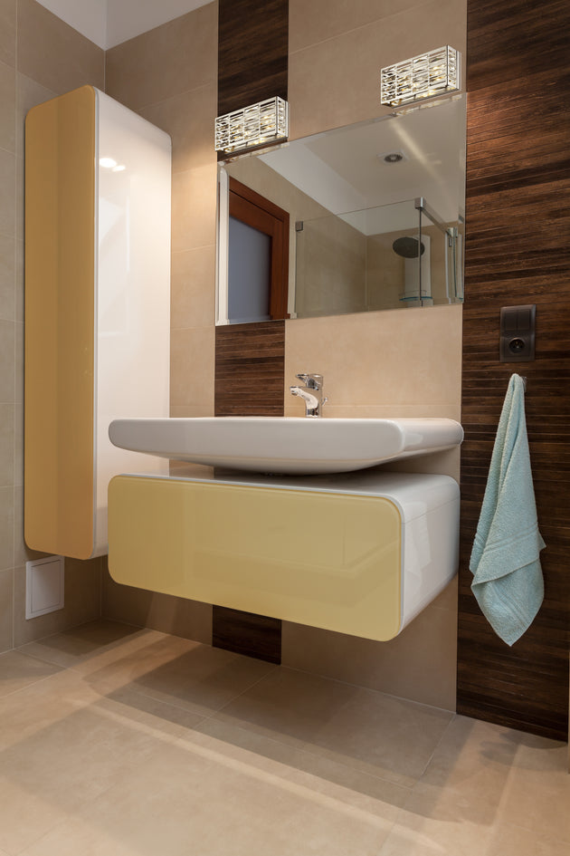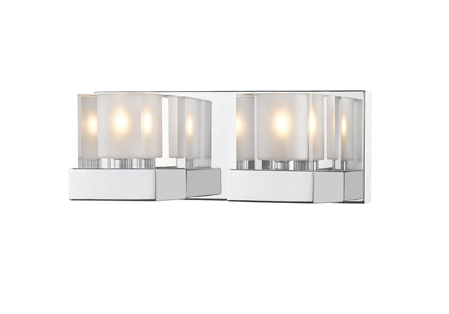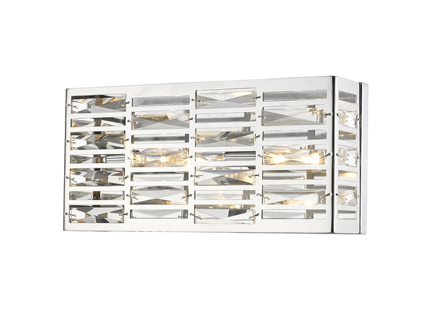 Regular price $124.802 Light Vanity Lustrous crystal layering give the Cronise collection its unique style. Round and square frames finished in Chrome encase the beautiful crystal, produce a sparkling light. Sleek and elongated, this two-light bath sconce dresses...