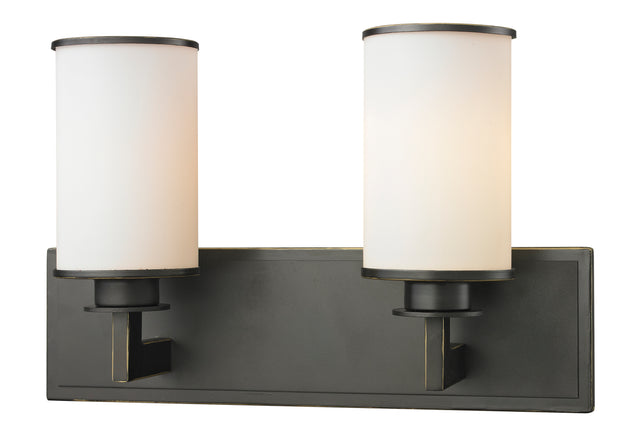 Regular price $76.702 Light Vanity --- The contemporary Savannah family adds sophistication to home décor. The beautifully appointed olde bronze fixture is perfectly paired with matte opal glass shades in this 2 light vanity. Specifications Style Number 413-2V... -