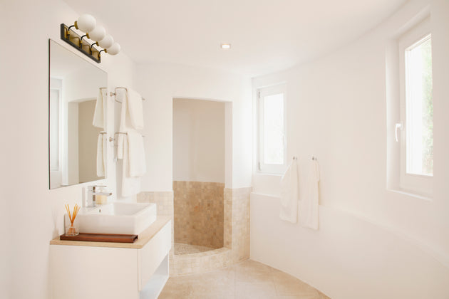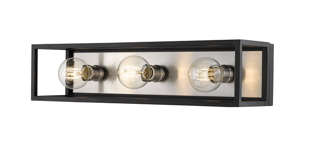 Regular price $124.803 Light Vanity Kube displays the abstract combination of round and square. Square and rectangular shapes frame the round globe bulbs of the Kube collection. Contrasting finishes of matte black and chrome, or matte black and... -