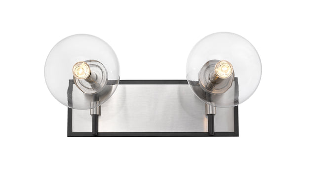Regular price $130.002 Light Vanity The Parsons collection of mid-century modern inspired fixtures, blended with contemporary design are finished in black with brushed nickel accents and clear glass, or black with brass accents and matte opal glass. With... -
