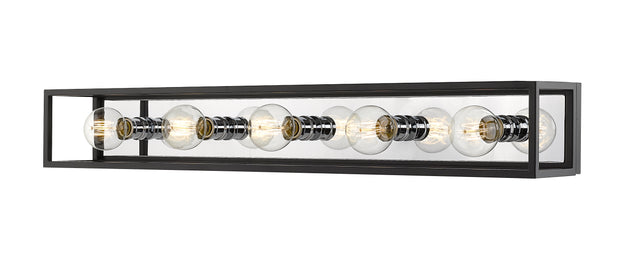 Regular price $161.205 Light Vanity Kube displays the abstract combination of round and square. Square and rectangular shapes frame the round globe bulbs of the Kube collection. Contrasting finishes of matte black and chrome, or matte black and... -