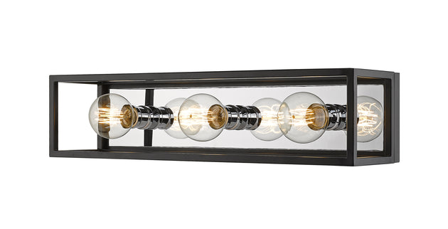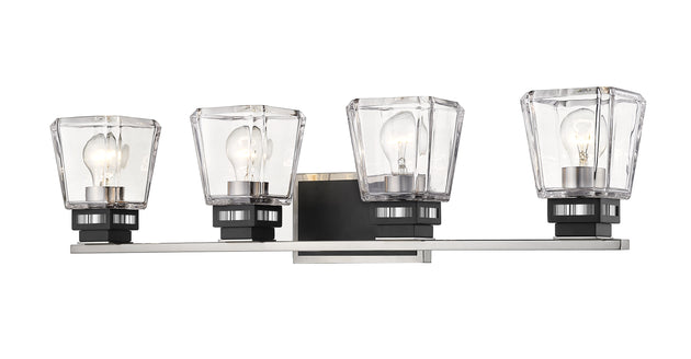 Regular price $218.404 Light Vanity The Parsons collection of mid-century modern inspired fixtures, blended with contemporary design are finished in black with brushed nickel accents and clear glass, or black with brass accents and matte opal glass. With... -