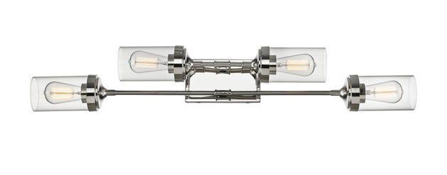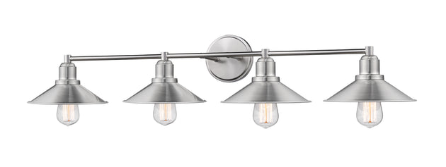Regular price $179.404 Light Vanity --- Finish the sophisticated ambiance of a custom designed master en suite with this stylish four-light vanity fixture. A collection of charming hood shades and a mounting bar in brushed nickel finish steel... -