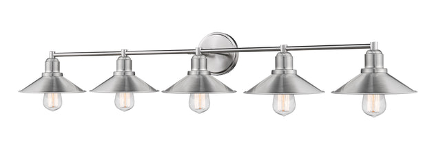Regular price $222.305 Light Vanity --- This elegant five-light vanity fixture positions itself as a marquee design element in a master en suite. Enjoy the antiqued effect with modern appeal, and find versatile beauty in a brushed nickel... -