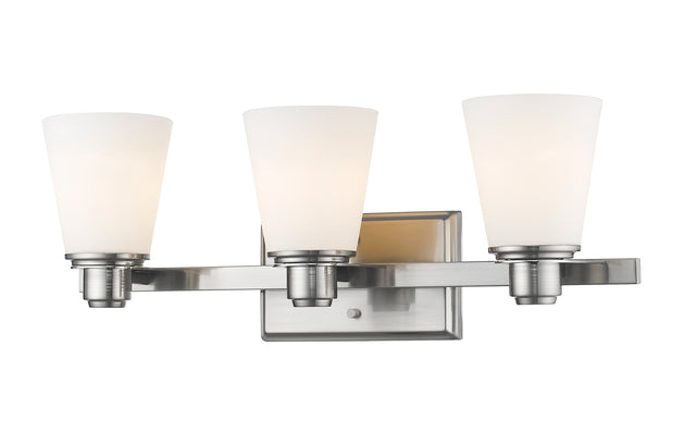 Regular price $135.203 Light Vanity --- Call attention to a custom designed bath sink with this three-light vanity fixture. Sleek brushed nickel finish steel offers an authentic charm to a trio of hood shades and sweet vintage bulbs... -