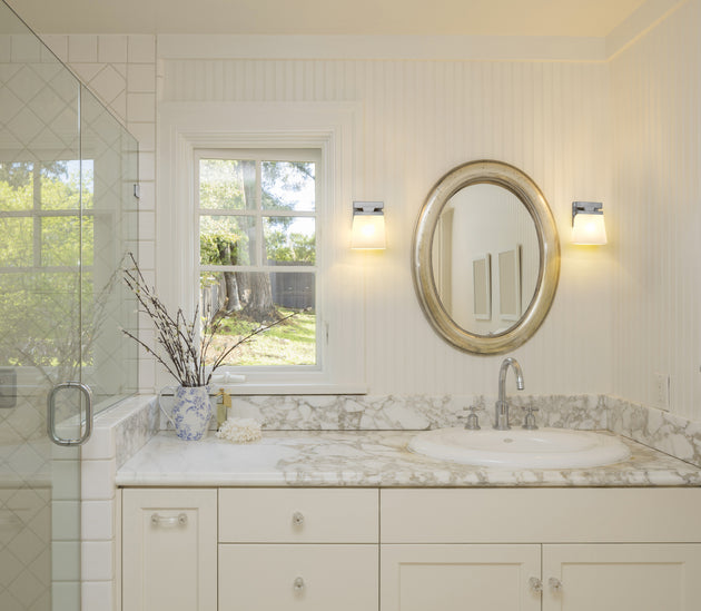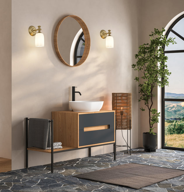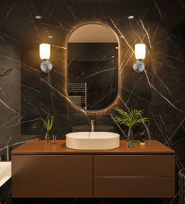 Regular price $92.001 Light Wall Sconce Modern and sleek, the Astor Collection of vanity fixtures can enhance a myriad of designs from industrial to Modern Farmhouse, depending on the glass style (smooth opal or ribbed crystal) and finish...