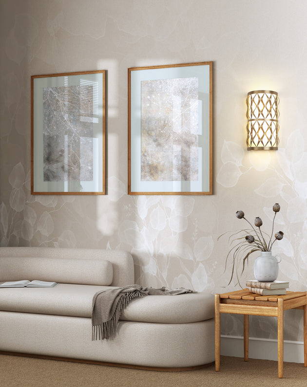 Regular price $160.002 Light Wall Sconce A soft fabric drum shade nestled within a sculptural metal frame creates a transitional look that will never go out of style. The Harden family offers casual elegance for every room in... -