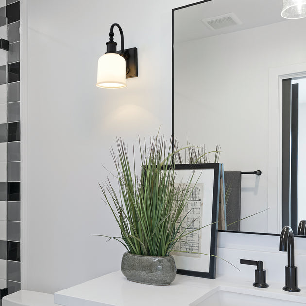 Regular price $78.001 Light Wall Sconce This timeless collection is inspired by Mid-Century aesthetics. The schoolhouse glass serves as the focal point of this design with its unique profile and diffused light. The classic lines complement a variety... -