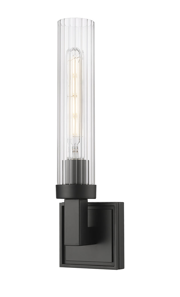 Regular price $130.001 Light Wall Sconce Slender fluted glass shades suspended on black cloth wrapped cords create this chic pendant and its surprisingly contrasting design elements. Three finishes are available to complement your décor, Brushed Nickel, Matte Black,... -