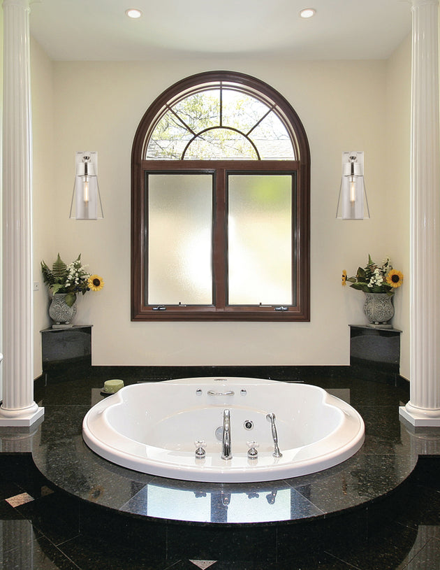 Regular price $130.001 Light Wall Sconce A mix of glass and metal in a streamlined silhouette is a look that always delivers in design. Here, the combination creates an airy fixture, perfect for those craving a sleek yet... -