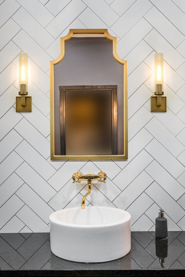 Regular price $186.002 Light Wall Sconce The classic look of traditional candlesticks receives a modern update with fluted glass shades that bring a touch of elegance. The slim profile of the Beau sconce allows it to be placed...