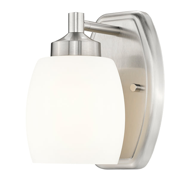 Regular price $72.001 Light Wall Sconce With zen-like simplicity, the Burk vanity series features an elongated silhouette in matte opal glass for superb light distribution. Burk can be ordered in a choice of Brushed Nickel, Matte Black, Chrome,... -