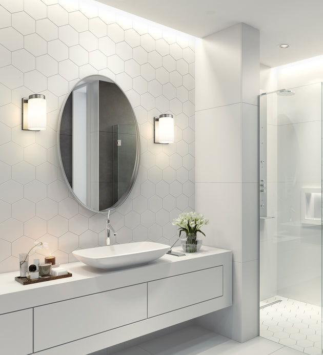 Regular price $62.001 Light Wall Sconce With zen-like simplicity, the Burk vanity series features an elongated silhouette in matte opal glass for superb light distribution. Burk can be ordered in a choice of Brushed Nickel, Matte Black, Chrome,... -