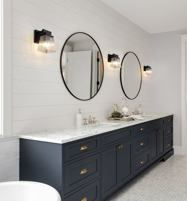 Regular price $58.501 Light Wall Sconce Modern and sleek, the Astor Collection of vanity fixtures can enhance a myriad of designs from industrial to Modern Farmhouse, depending on the glass style (smooth opal or ribbed crystal) and finish... -