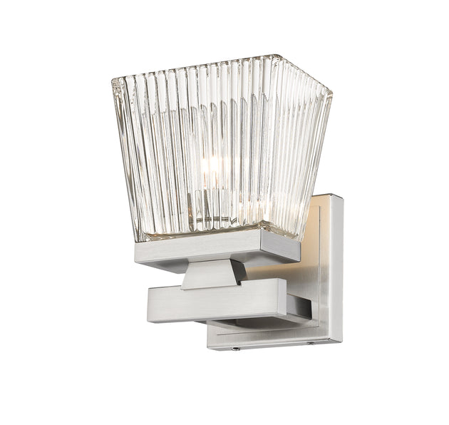 Regular price $52.001 Light Wall Sconce --- The Ascend collection of vanity fixtures creates a striking style with its steel banded shades. Utilizing Z-Lite’s new long-lasting, replaceble LED technology, these fixtures provide energy efficiency while delivering optimum illumination.... -