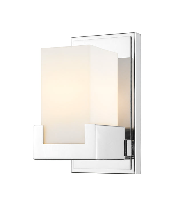 Regular price $75.401 Light Wall Sconce --- With a new twist on a contemporary design, the Peak family reveals rectangular Matte Opal shades locked into bold geometric cups. Featuring the latest in dimmable, LED technology, these fixtures maximize... -