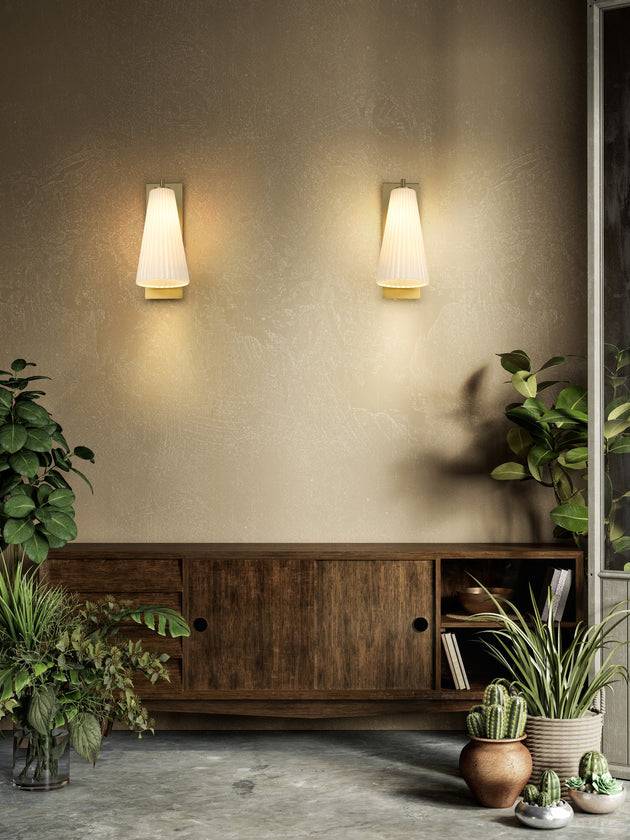 Regular price $172.001 Light Wall Sconce Architectural glass panels in an undulating shape bring subtle beauty and sophistication to the Alverton pendant and wall sconce. Each glass shade is artistically cradled by detailed steel brackets that firmly support... -