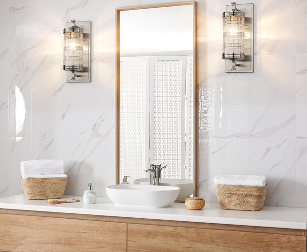Regular price $144.001 Light Wall Sconce A classic pattern in menswear, Glen plaid is the inspiration for our new artisanal glass in the Archer Collection. The timeless beauty of this unique glass elevates the aesthetic of this simply... -