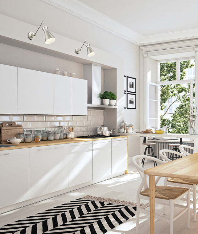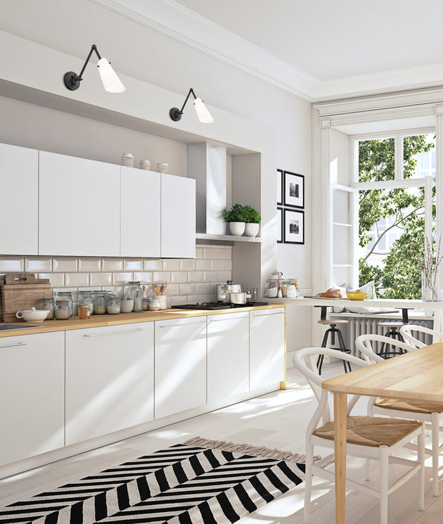 Regular price $234.001 Light Wall Sconce The Julia wall sconce, with its neutral white shade and contemporary look, boasts the convenience of adjustability due to an articulating arm for positioning the light exactly where needed. Available for hardwire... -