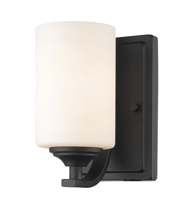 Regular price $92.001 Light Wall Sconce --- The contemporary Savannah family adds sophistication to home décor. The beautifully appointed olde bronze fixture is perfectly paired with a matte opal glass shade in this 1 light wall sconce. Specifications... -
