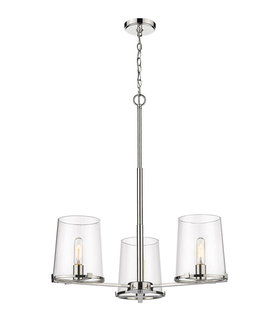 3 Light Chandelier The generous proportions of the Callista Collection gives this hand-crafted steel series a solid design presence. Choose the Polished Nickel finish for a contemporary or transitional look or go bold with a Matte...Regular price $450.00