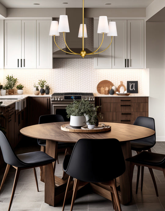 5 Light Chandelier Feminine lines in a slender silhouette define the Shannon chandelier, which will beautifully illuminate a grand dining room, great room, banquette, or kitchen island while subtly blending in with the overall décor. Available...Regular price $354.00 -