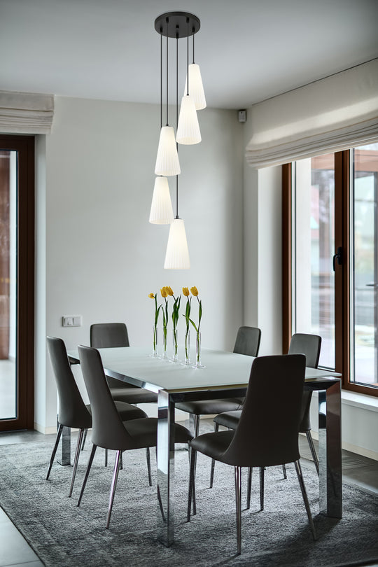 5 Light Chandelier The elongated fluted shape of the Farrell series provides plenty of light in a slim silhouette. Available as a pendant as well as a wall sconce, Farrell can be ordered in a choice...Regular price $774.00