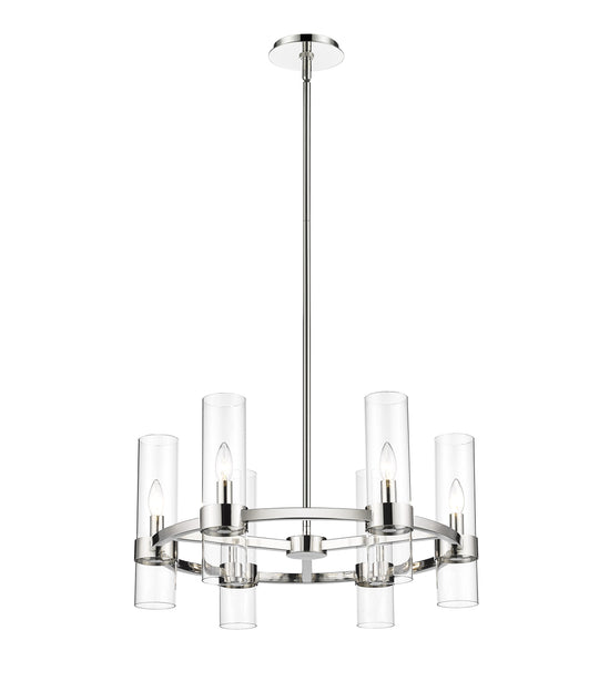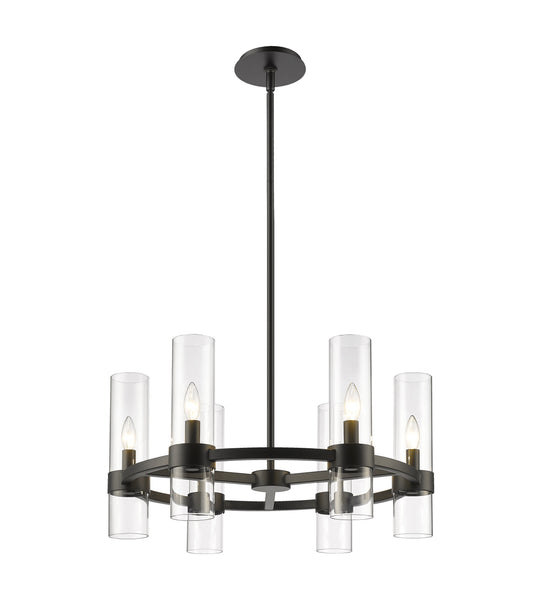 6 Light Chandelier A distinctively styled frame, combined with a Modern Minimalist sensibility, makes Datus a visual feast for the eyes. Crafted of solid steel, unadorned metal bands hold the slender glass cylinders in a state...Regular price $872.00 -