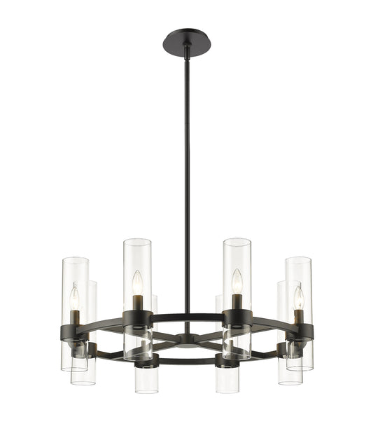 12 Light Chandelier A distinctively styled frame, combined with a Modern Minimalist sensibility, makes Datus a visual feast for the eyes. Crafted of solid steel, unadorned metal bands hold the slender glass cylinders in a state...Regular price $1,658.00 -