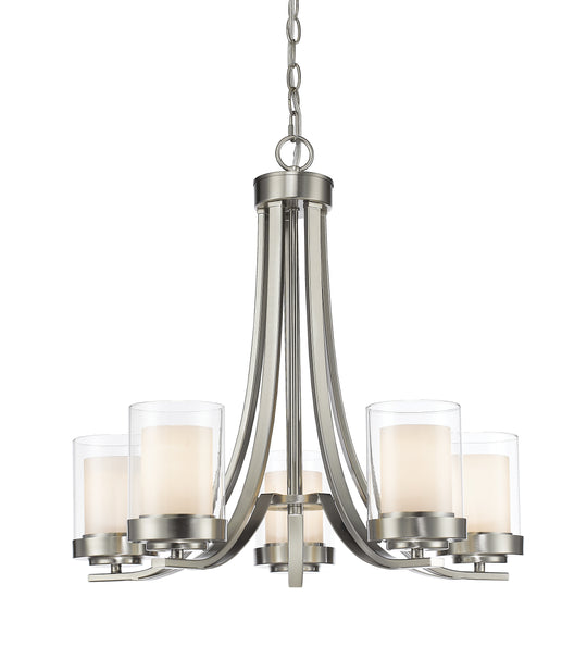 5 Light Chandelier --- Clean, graceful lines of the arms + glass shades define the Willow family. Brushed nickel fixtures and inner matte opal with clear outer glass shades create clean and unique designs. Specifications Style...Regular price $472.00 -