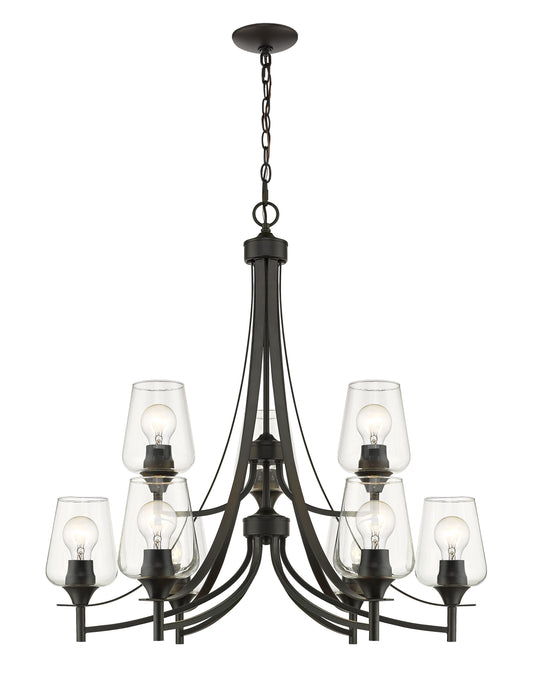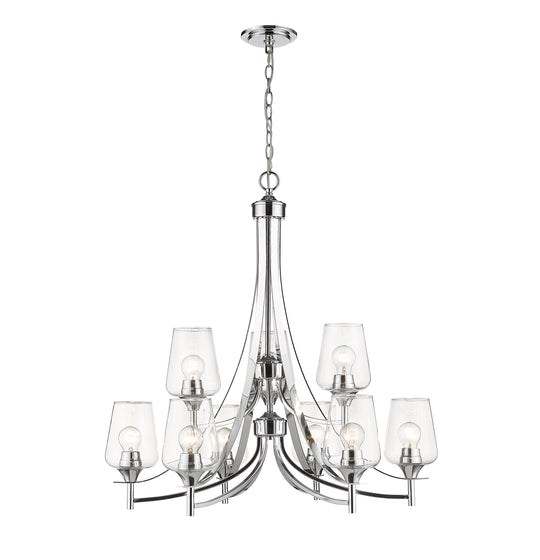 9 Light Chandelier Long graceful arms combined with the large Bordeaux glass shades make the Joliet Collection a nod to the mid-century vibe. Available in four finishes, Brushed Nickel, Matte Black, Olde Brass and vanities in...Regular price $718.00