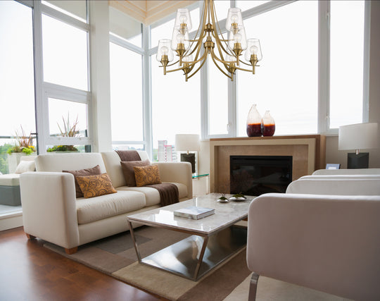 5 Light Chandelier Long graceful arms combined with the large Bordeaux glass shades make the Joliet Collection a nod to the mid-century vibe. Available in four finishes, Brushed Nickel, Matte Black, Olde Brass and vanities in...Regular price $346.00 -