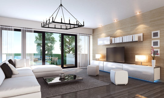 8 Light Chandelier The Barclay Collection offers a simple, minimalist silhouette, available in round, square and rectangle shapes. This collection complements today’s design trends with optional colored candle cover sleeves. Black fixtures come with black, nickel...Regular price $650.00 -