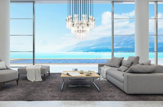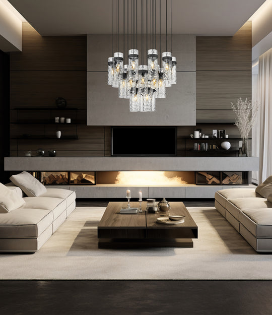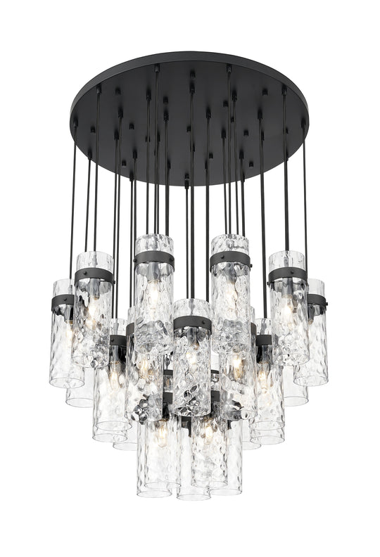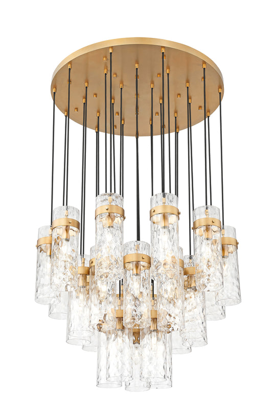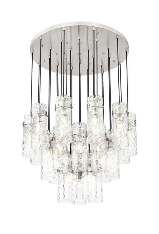 27 Light Chandelier Cylindrical glass shades add subtle elegance to the Fontaine collection. Fontaine features rippled glass and a braided cord for an upscale aesthetic that will enhance as a single pendant as well as multi-canopy...Regular price $4,318.00 -