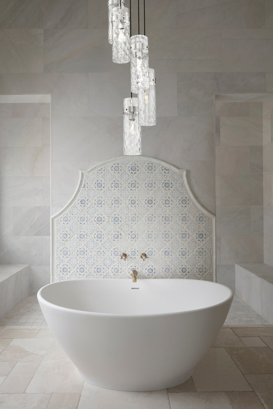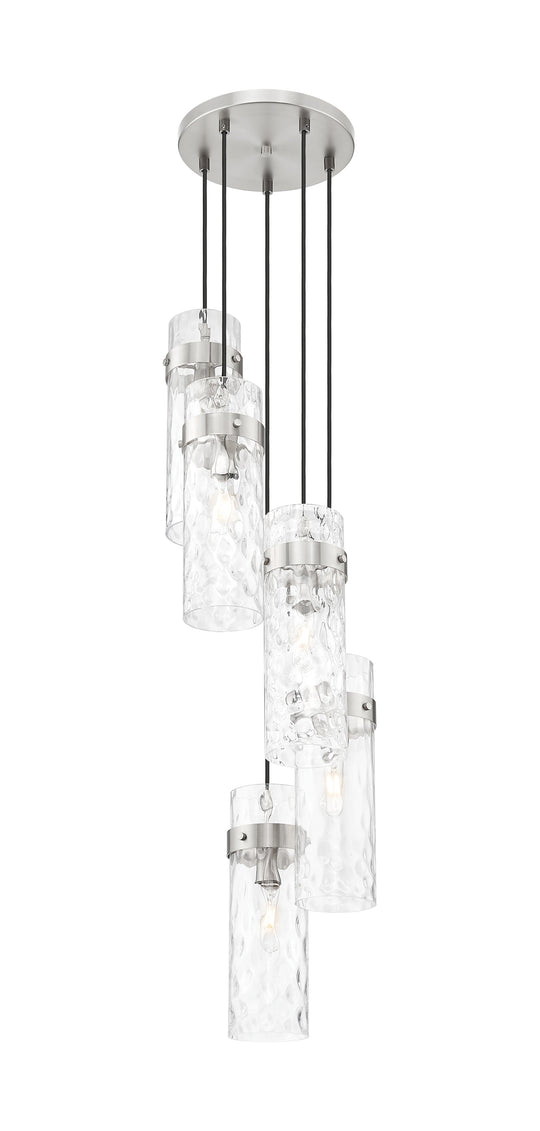 5 Light Chandelier Cylindrical glass shades add subtle elegance to the Fontaine collection. Fontaine features rippled glass and a braided cord for an upscale aesthetic that will enhance as a single pendant as well as multi-canopy...Regular price $694.00 -
