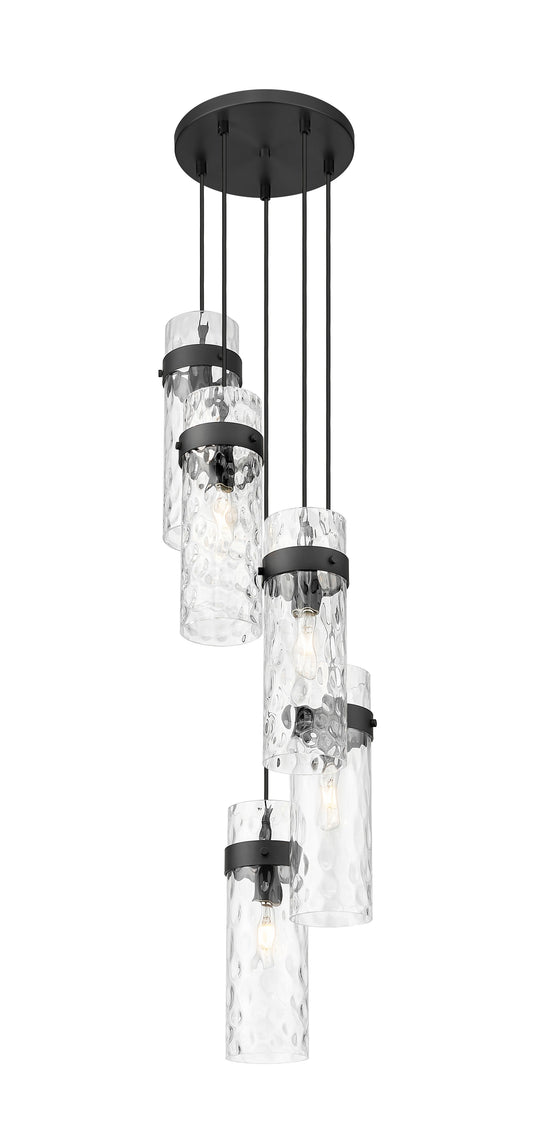 5 Light Chandelier Cylindrical glass shades add subtle elegance to the Fontaine collection. Fontaine features rippled glass and a braided cord for an upscale aesthetic that will enhance as a single pendant as well as multi-canopy...Regular price $818.00