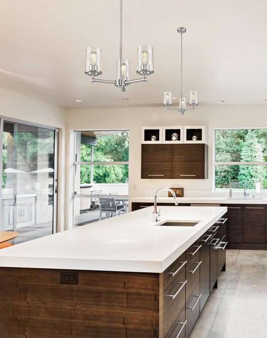 3 Light Chandelier The Thayer Collection of Pendants, Chandeliers, Linear, as well as bath fixtures are designed with a timeless silhouette and smooth clear glass shades allow it to complement any design environment. Bath fixtures can...Regular price $218.00