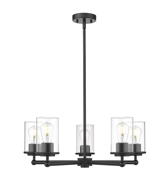 5 Light Chandelier The Thayer Collection of Pendants, Chandeliers, Linear, as well as bath fixtures are designed with a timeless silhouette and smooth clear glass shades allow it to complement any design environment. Bath fixtures can...Regular price $282.00 -