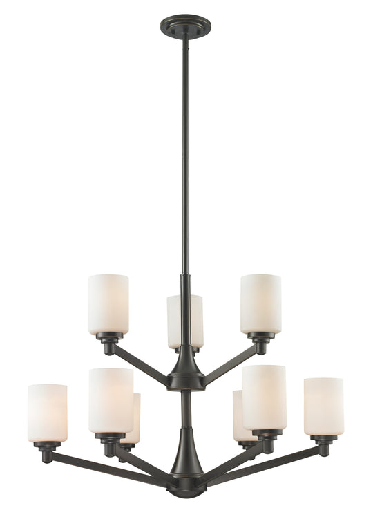 9 Light Chandelier --- Clean lines and contemporary elegance describes the Montego family. Coppery Bronze fixture and matte opal glass are paired to give a perfect finish in this 9 light chandelier. Specifications Style Number 411-9...Regular price $187.20 -