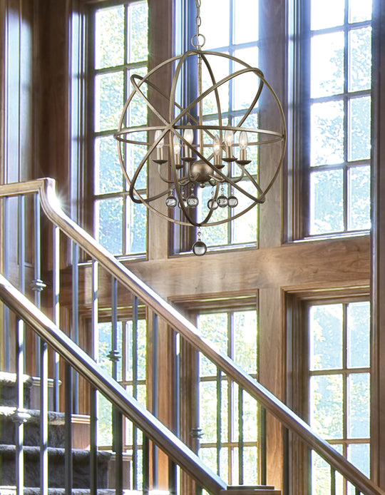 6 Light Chandelier --- Spherical art at its best! On this 6 light pendant, the rich hues of the antique silver finish mingle playfully with the crystal spheres sparkling from within. Specifications Style Number 415-24 Install...Regular price $371.80 -
