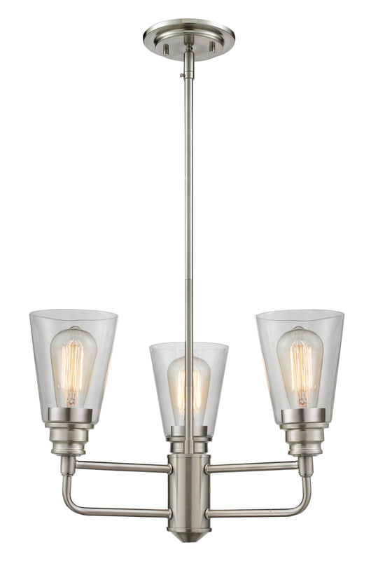3 Light Chandelier --- Harmony of vintage style fixture, clear glass, and vintage bulb (not included) shapes define the Annora family. Clear glass paired with brushed nickel fittings complete the look. Specifications Style Number 428-3-BN Install...Regular price $148.20 -