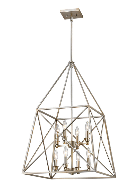 8 Light Chandelier --- Forged tressle patterns fashioned after the iron train bridges of another era and modernized with a dual Bronze and Gold finish, or an antique silver finish define the Tressle collection. Oversized, well...Regular price $217.10 -