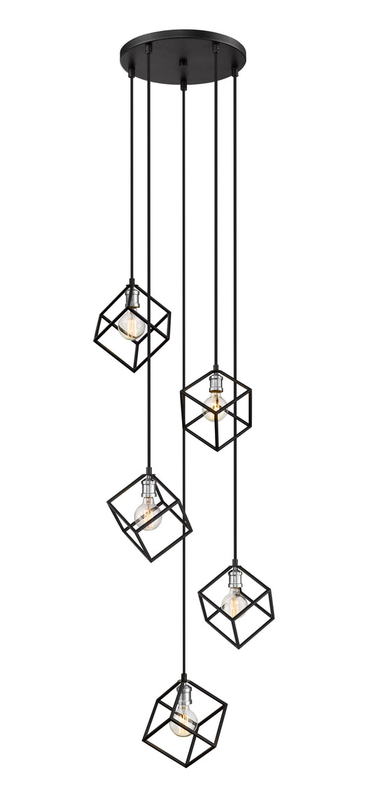 5 Light Chandelier Bold and artistic, the Vertical Pendant makes a striking focal point in any modern or eclectic space. A series of steel, open-framed cubes are suspended at various lengths from braded black cords. Available...Regular price $336.70 -