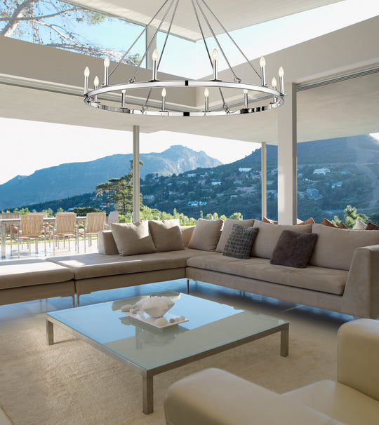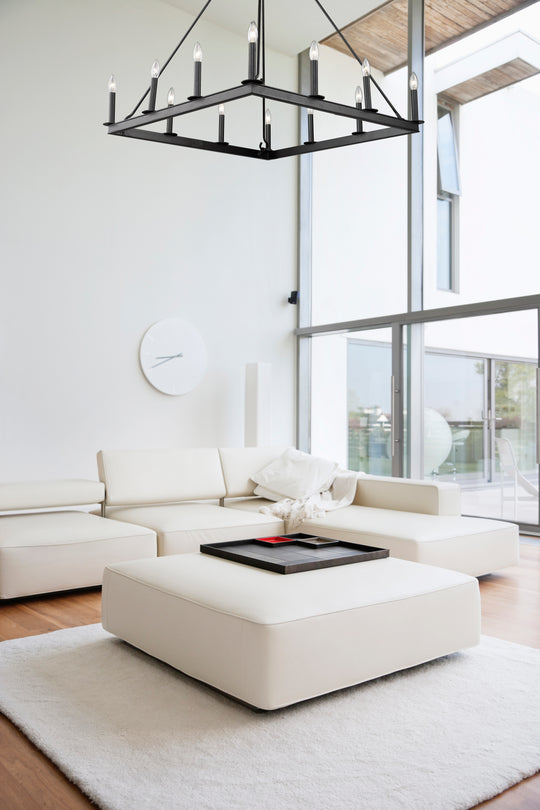 12 Light Chandelier The Barclay Collection offers a simple, minimalist silhouette, available in round, square and rectangle shapes. This collection complements today’s design trends with optional colored candle cover sleeves. Black fixtures come with black, nickel...Regular price $692.90 -