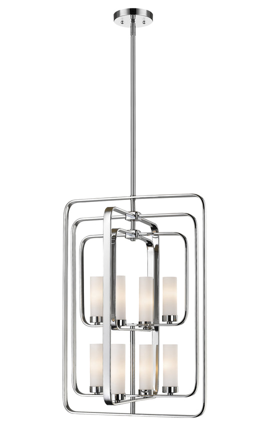 8 Light Chandelier --- Sleek and contemporary, the Aideen collection incorporates rectangular and square shapes to achieve it’s cutting edge design. Matte opal shades are paired with a choice of three finishes which include Brushed Nickel,...Regular price $399.10 -